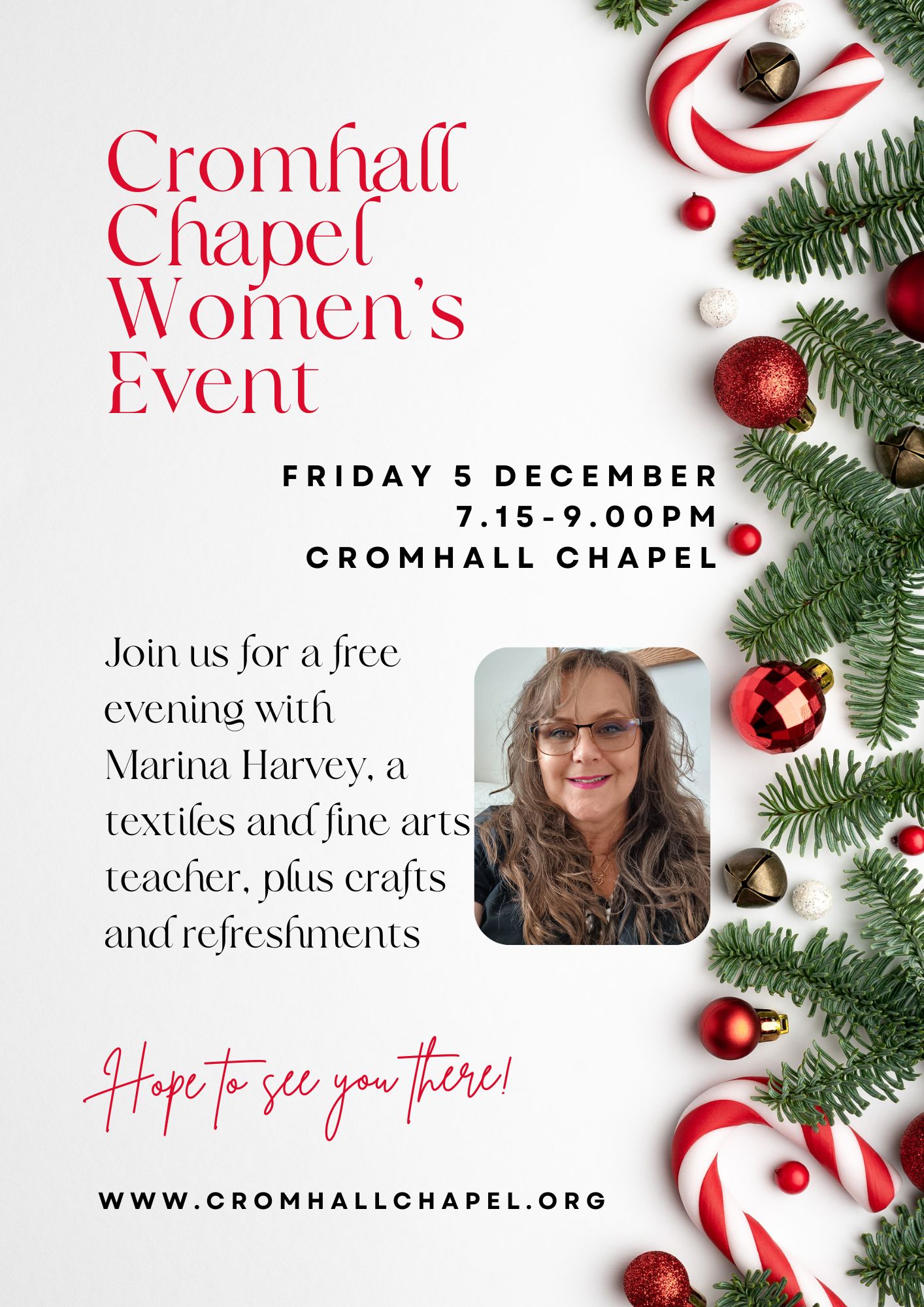 | Women’s Christmas Special – Friday 5th December – 7.15pm for 7.30 start “Textile Testimonies…my Design Journey” | Textiles | Marina Harvey |